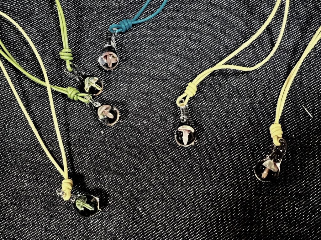 ガラスの中にキノコ🍄がいる革のネックレスや、